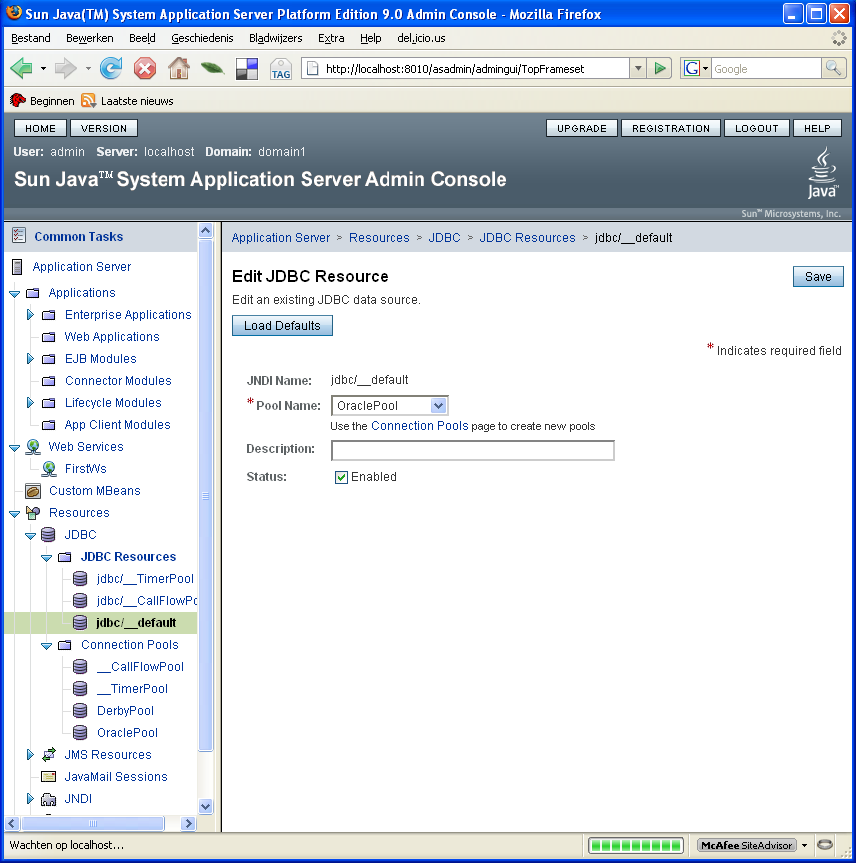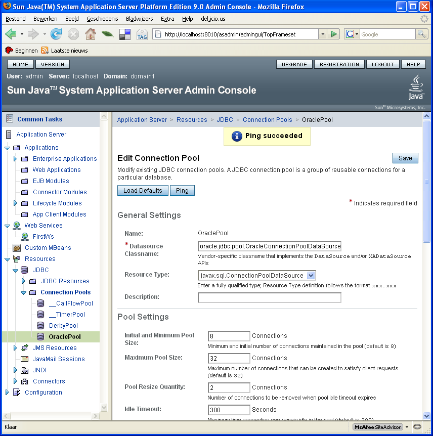 Install Sun Application ServerSun Application Server can be downloaded from the sun download site. I have chosen to perform the exercises against Java EE 5 SDK Update 2 (without JDK and Tools in my case.) While installing make notes on the ports used (one of the default ports will conflict with the ports used by oracle, to keep overview I have used the following ports .